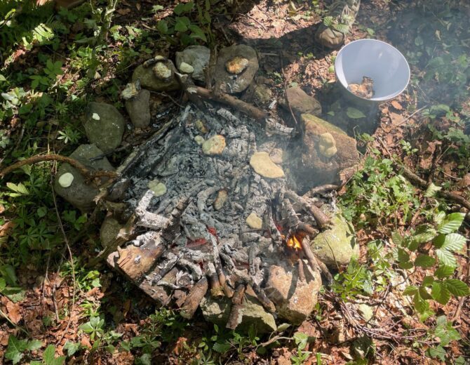 Auch im Wald legen wir großen Wert auf eine gesunde und ausgewogene Ernährung. Wir kochen saisonal. Wann immer es möglich ist, bereiten wir das Mittagessen direkt im Wald über offenem Feuer zu. Die Kinder bringen ihre eigene Trinkflaschen mit. Die Kinder werden in alle Schritte des Kochens – vom Feuer machen bis zum Zubereiten der Mahlzeiten – altersgerecht eingebunden.